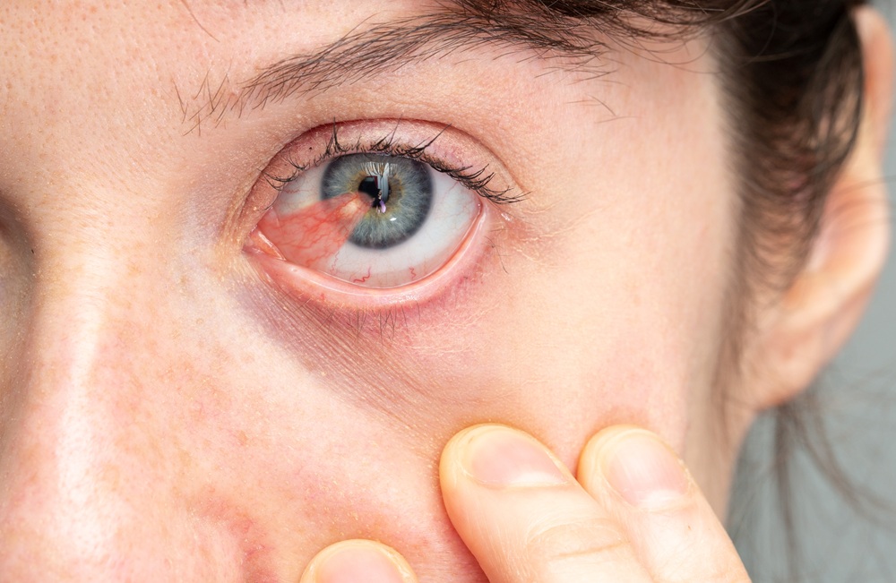 Pterygium is a non-cancerous growth on the white of your eye. Experts are not sure what causes pterygium, but most believe it can be caused by prolonged exposure to UV light. Because of this, the condition is often referred to as “surfer’s eye.” Pterygium can cause itching and irritation.